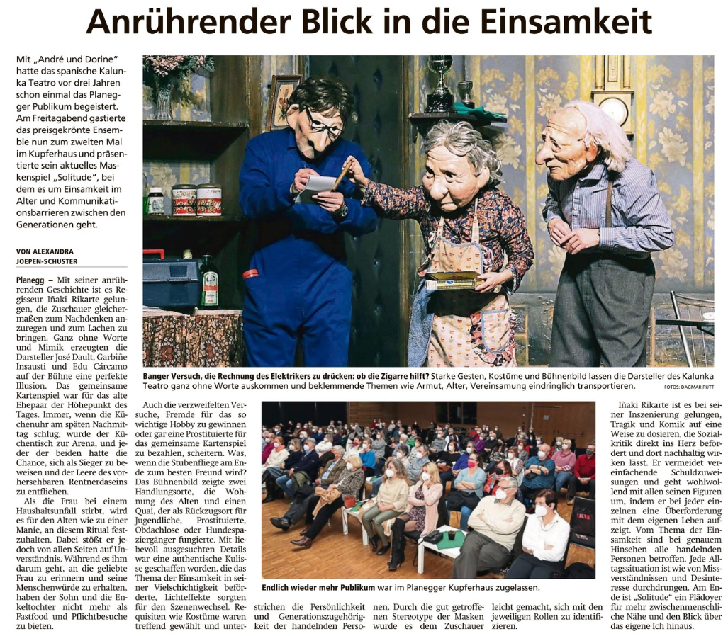 - Kulunka Teatro - Anrührender Blick in die Einsamkeit (Münchner Merkur, 14.02.22)