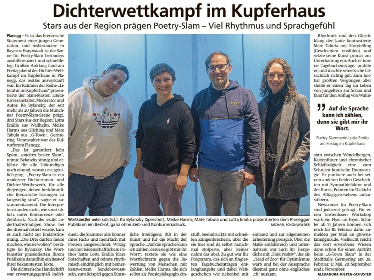 - Poetry Slam-Show - Stars aus der Region (Münchner Merkur, 10.02.25)