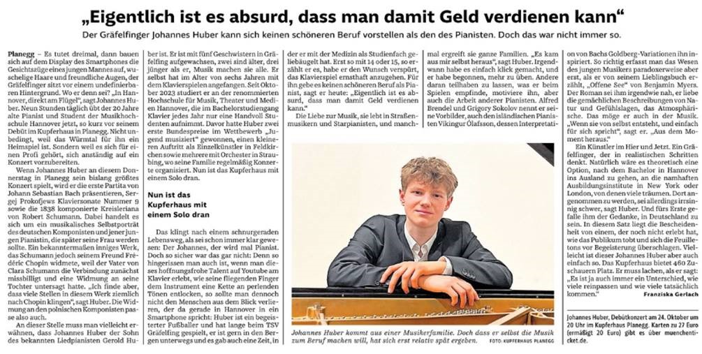 - Johannes Huber - Jugendliche Meisterleistung (Münchner Merkur, 26.10.24)