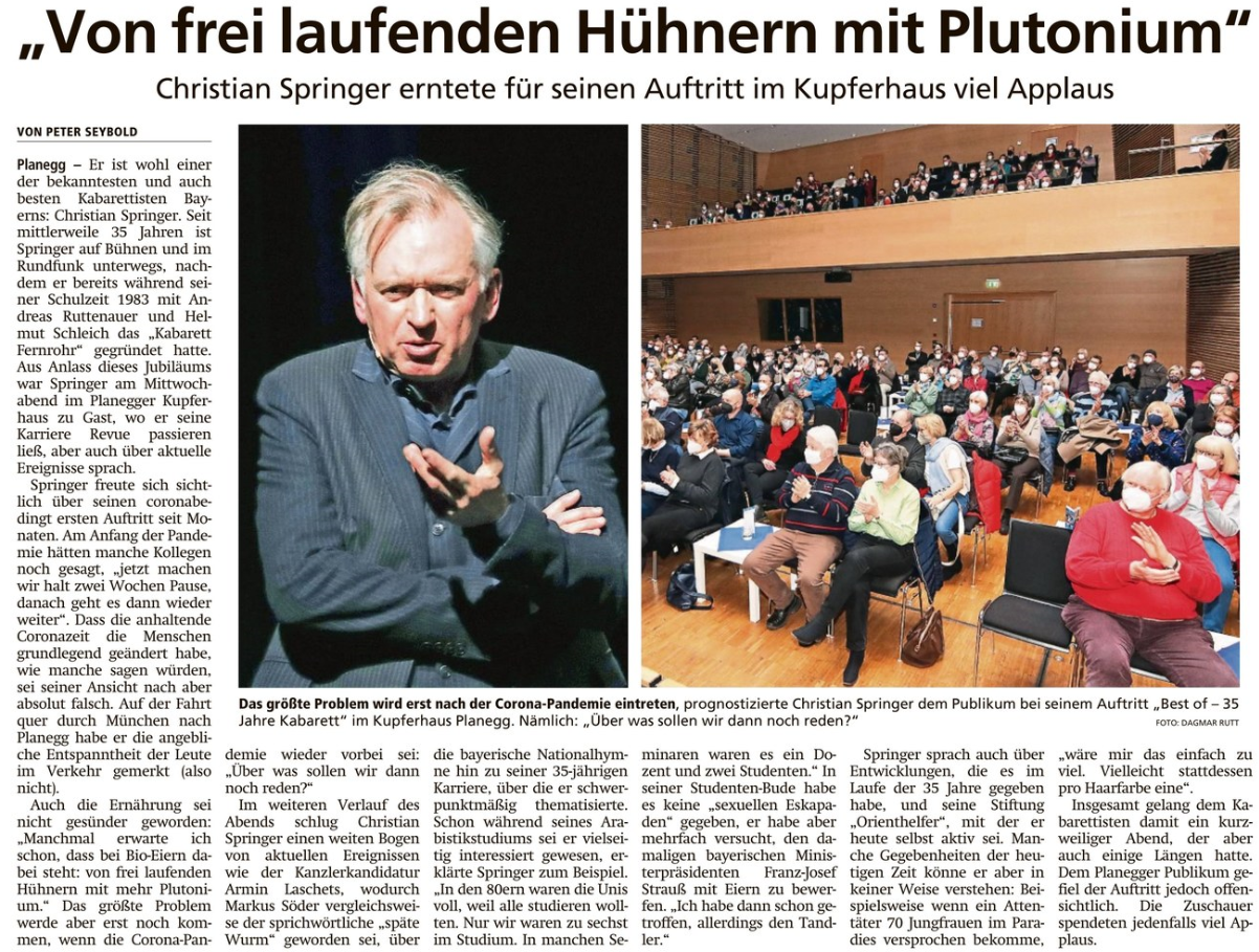 - Christian Springer - erntete im Kupferhaus viel Applaus (Münchner Merkur, 11.02.22)