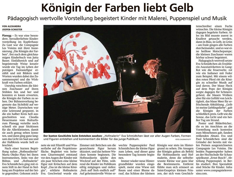 - Die Königin der Farben - Vorstellung begeistert Kinder (...) (Münchner Merkur, 07.03.23)